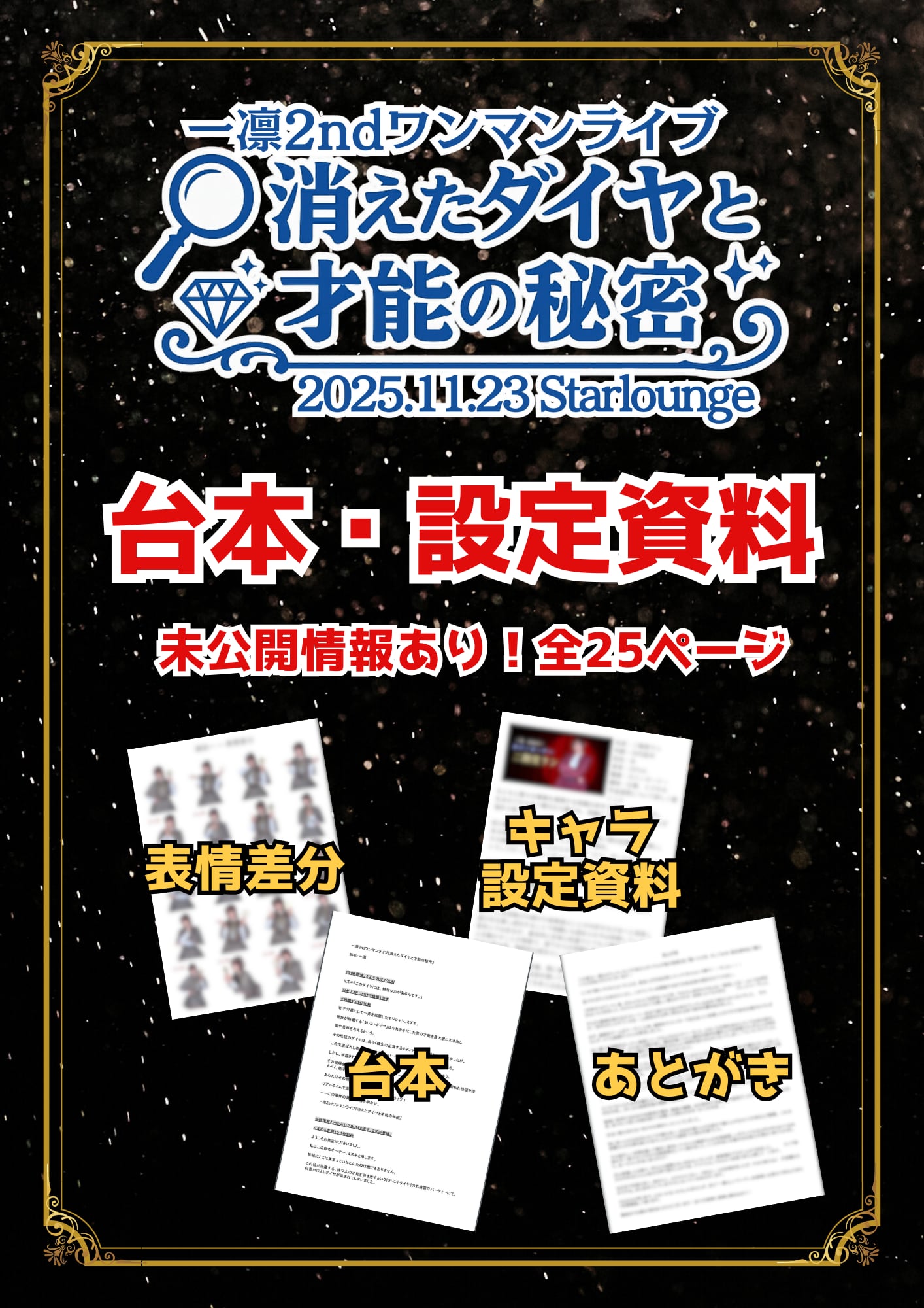 一凛2ndワンマンライブ『消えたダイヤと才能の秘密』の台本と設定資料のセットを販売します!